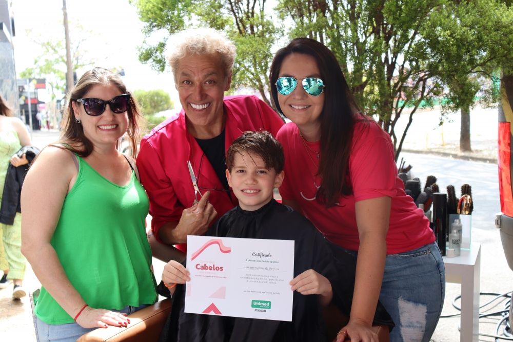 Durante a ação, a população de São João da Boa Vista pôde cortar seu cabelo gratuitamente e doar as mechas para a produção de perucas destinadas a pacientes com câncer.