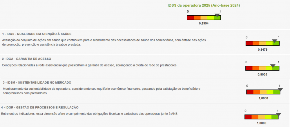 O IDSS é um dos principais instrumentos de avaliação das operadoras de planos de saúde no Brasil. Com pontuação que varia de zero a 1,00, o índice tem como objetivo assegurar transparência e estimular a melhoria contínua do setor de saúde suplementar, considerando quatro diferentes aspectos da atuação das operadoras: